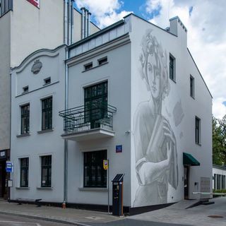 Boczną ścianę budynku frontowego dodatkowo ozdobił powstały w lipcu 2023 r. mural zatytułowany „Bibliotekarz”, podobnie jak nazwa nawiązujący do historii budynku. Jego autorem jest Paweł Ponichtera, którego wielkoformatowe prace można podziwiać także na budynkach przy ul. Kopernika i przy ul. Wojska Polskiego (wspólnie z Maciejem Walczakiem).