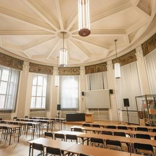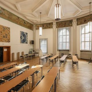 Największą niespodzianką Wyższej Szkoły Sztuki i Projektowania w Łodzi jest wnętrze dawnej sali rekreacyjnej, dziś auli. Wysoka na dwa piętra przestrzeń zakończona półokrągłą absydą skrywa prawdziwy skarb malarski: polichromie z 1912 roku przedstawiające sceny z bajek Bracia Grimm. Na ścianach można zobaczyć m.in. Śnieżkę, Czerwonego Kapturka czy Muzykantów z Bremy.
