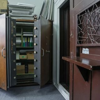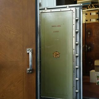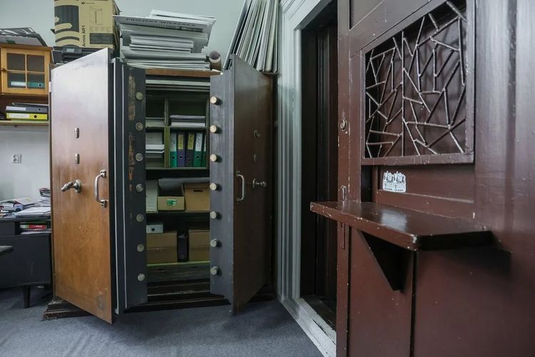 Ściany wzmocniono stalowymi płytami, drzwi mają 25 cm grubości i wyposażono je w czteropokrętłowy zamek szyfrowy. W środku stoją przedwojenne kasy pancerne zdobione mazerunkiem – malarską imitacją drewna. Najbardziej zdumiewa jednak system alarmowy: stalowa siatka w suficie i ścianie uruchamiała sygnał przy dotknięciu. Specjaliści nie znaleźli drugiego takiego zachowanego systemu w Polsce.
